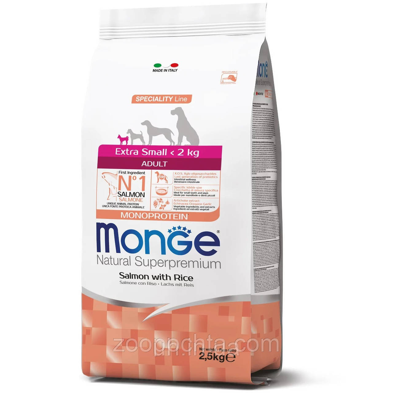 -10%Сухий корм Monge Dog Extrasmall Adult для дорослих собак мініатюрних порід, лосось із рисом, 2.5КГ