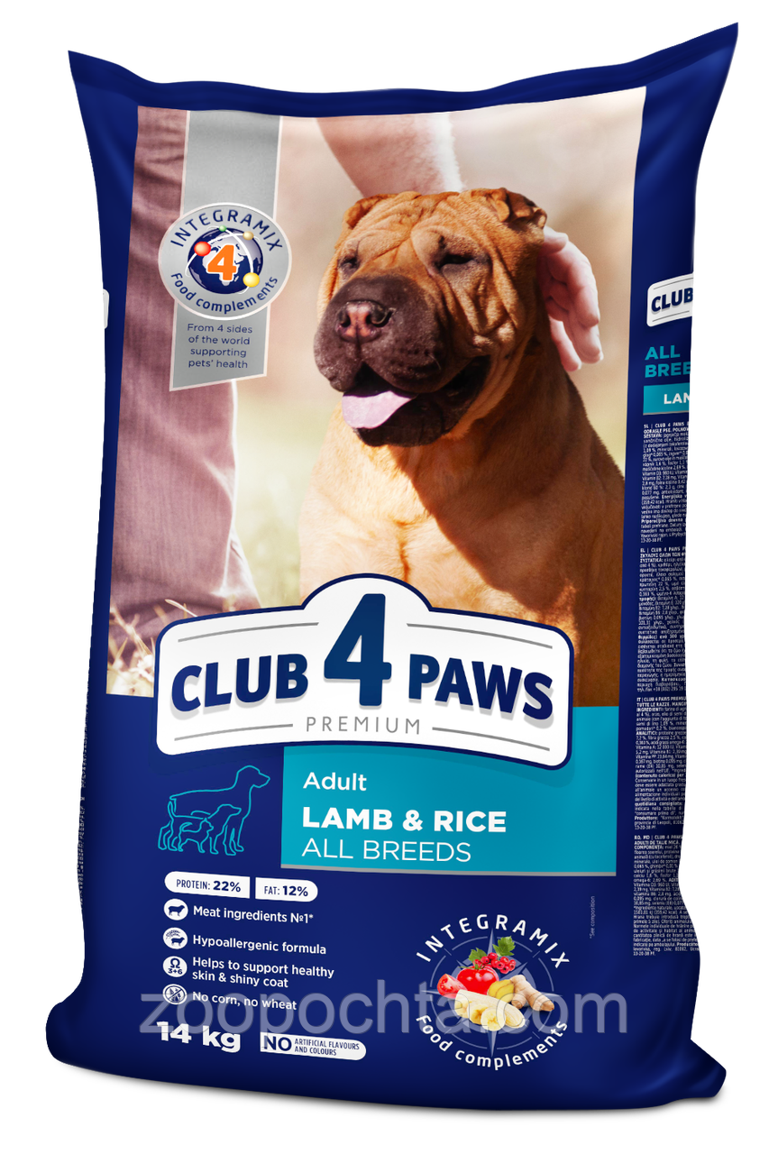 В магазині «Зоопочта» можна купити корм Клуб 4 Лапи Premium з ягням і рисом за дуже доступною ціною.